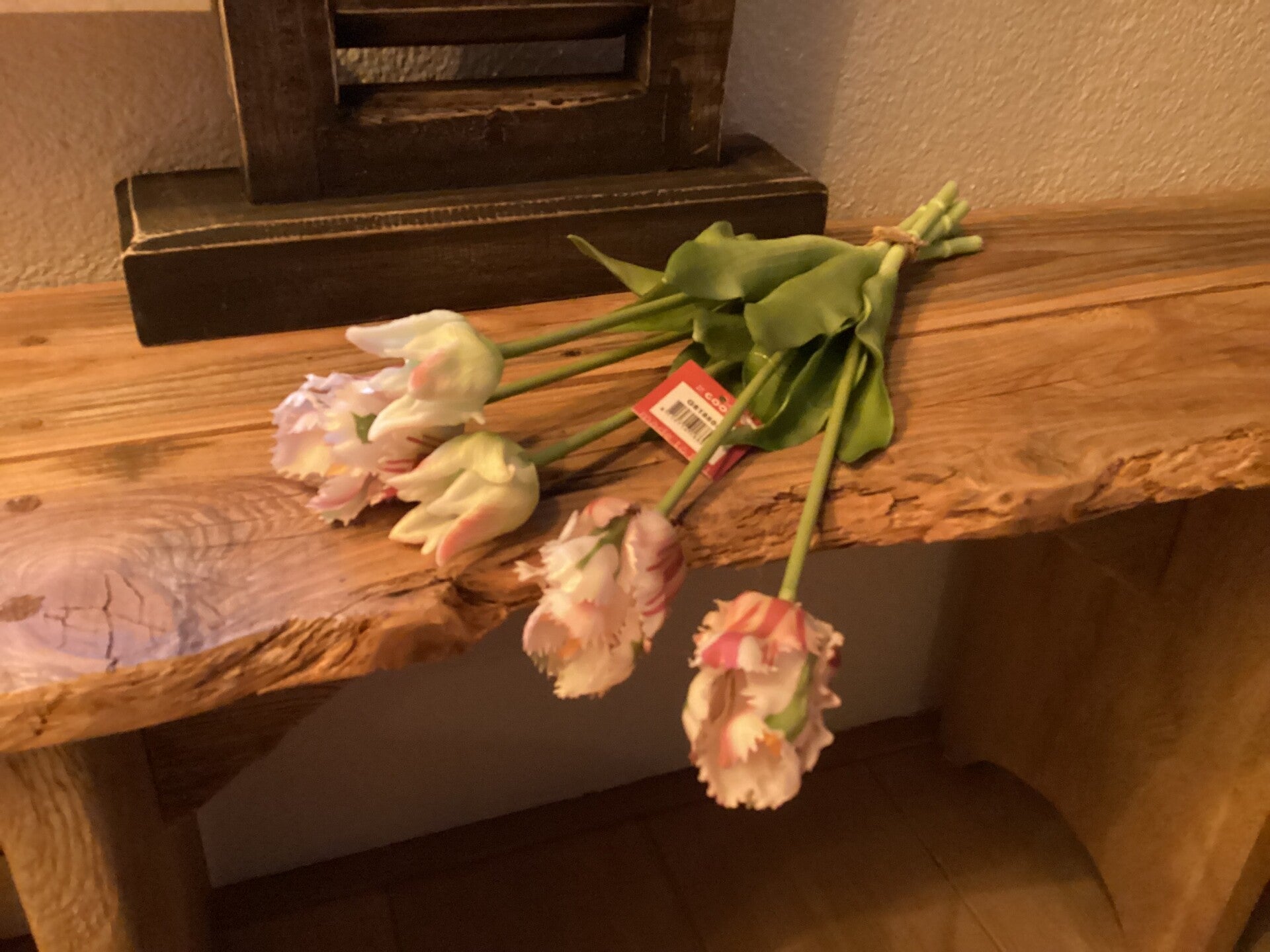 Bosje Parrot Real Touch Tulpen Wit/Roze