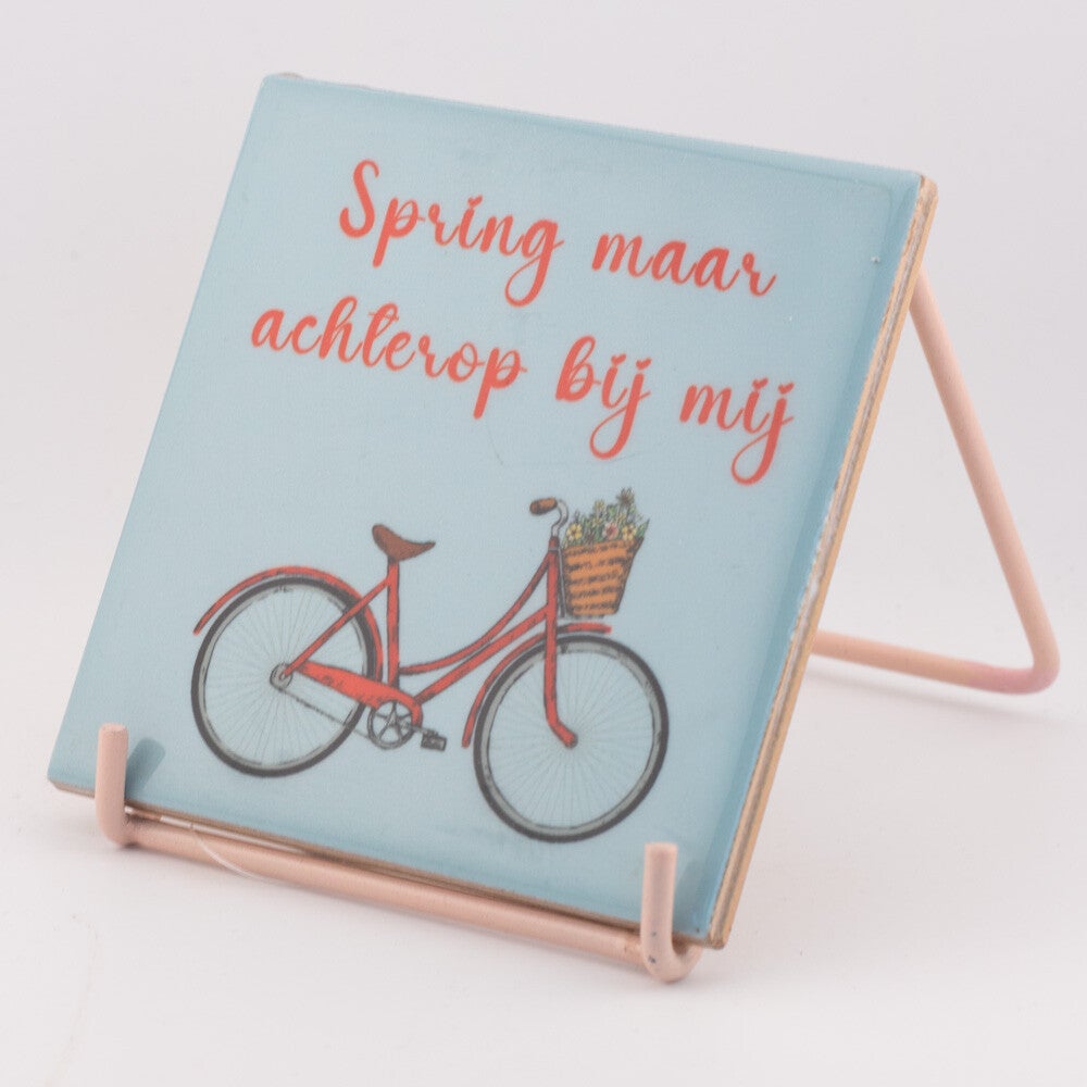Tegeltje met Tekst: Spring maar Achterop