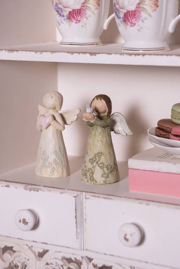 Prachtig beeldje van een een engel in zachte pasteltinten groen/crème. Deze engel is niet alleen een perfecte decoratie voor kerst maar ook een sfeervol accent voor andere gelegenheden zoals een herdenkingsplekje. Ook leuk om weg te geven voor een cadeau.